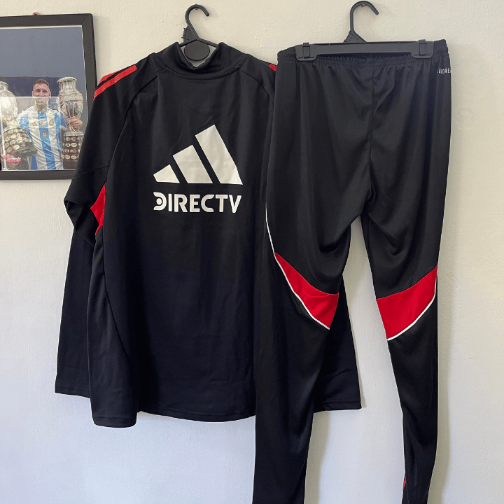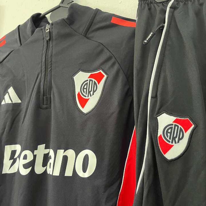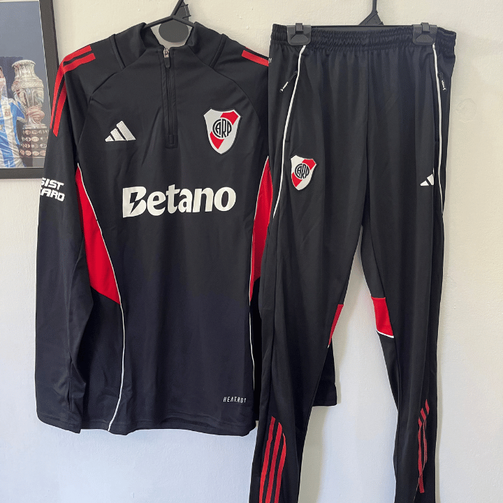 Llevá la pasión completa con el conjunto River Plate 25/26. Incluye buzo de medio cierre y pantalón deportivo negro con detalles en rojo. Fabricados en lycra liviana de calidad premium, cómodos y modernos. Perfectos para entrenar, salir o alentar al Millo en la tribuna.